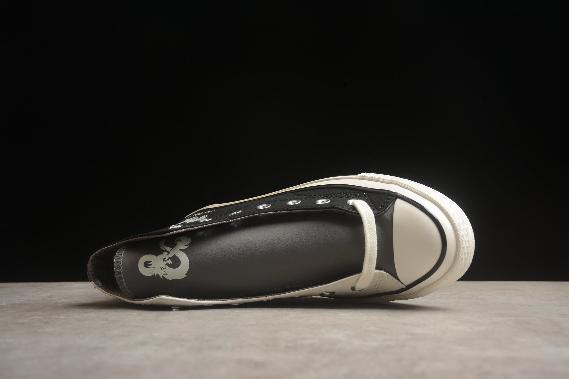 Step into something bold with this Dungeons & Dragons–inspired high-top, designed for fans of adventure, fantasy, and iconic tabletop themes. Built with a premium leather upper, this pair features a unique color-blocked layout, raised embroidery on the side panel, detailed stitching at the heel, and adventure-inspired graphics throughout. Custom eyelets echo the shape of classic D20 dice, while themed text and tongue details complete the storytelling.