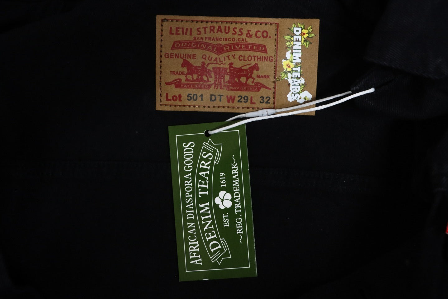 A stunning display of craftsmanship. Don't sleep on this inspired by - DENIM TEARS Washed Flame Denim Jacket, Kapok Flower Denim Jacket, Imported Denim Fabric - 80 Levi's Sole, Multiple Irregular Prints, Custom Leather Patches and Buttons. Unisex, Sizes: M-3XL.